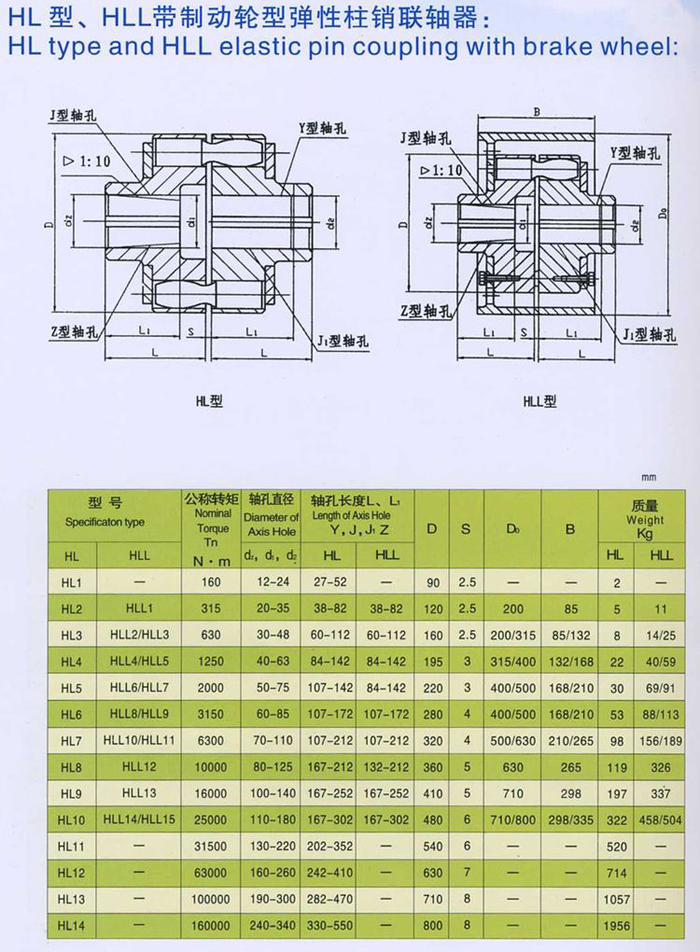 HL型、HLL帶制動輪型彈性套柱銷聯(lián)軸器系列