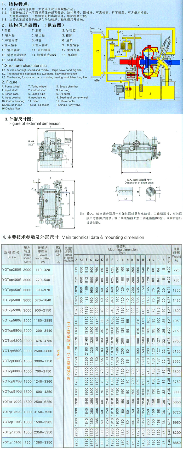 P 泵輪 T 渦輪 S 導管腔 1.輸入軸 2.輸出軸 3.箱體